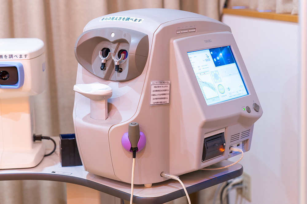 濃淡の見え方を調べます。 白内障の術前・術後の診断、屈折矯正手術後の経過観察などに有効です。 |