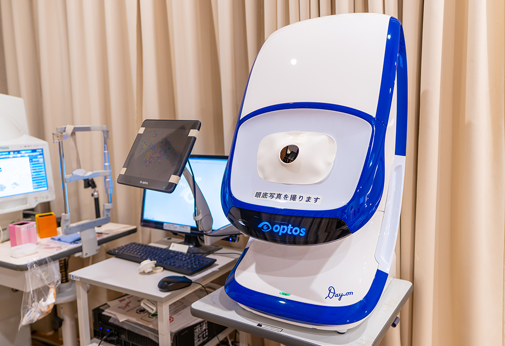 血管の状態や網膜・視神経などを観察する眼底検査に使用します。
