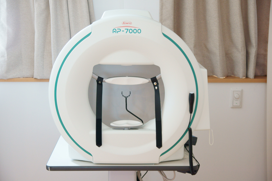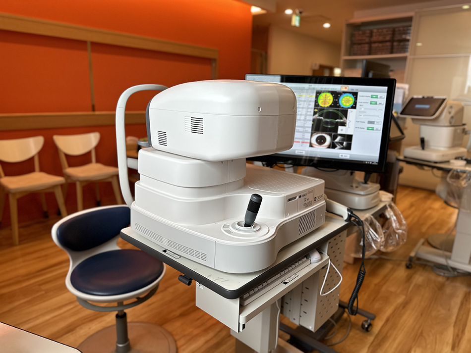 網膜の断面図を撮影し、網膜の厚さを測定する機器です。 緑内障や糖尿病網膜症という失明に繋がる目の病気の早期発見が可能となります。 |