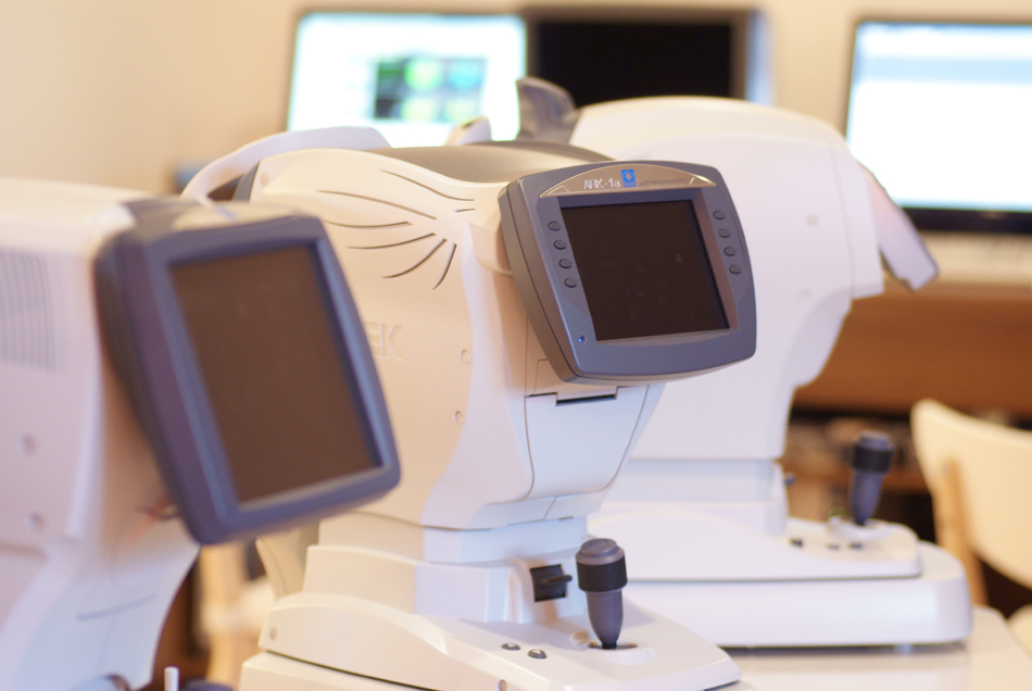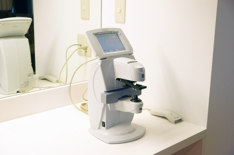 お持ちのメガネの度数(近視・遠視・乱視)を調べます。 また様々なタイプの遠近両用メガネにも対応した機器です。 |
