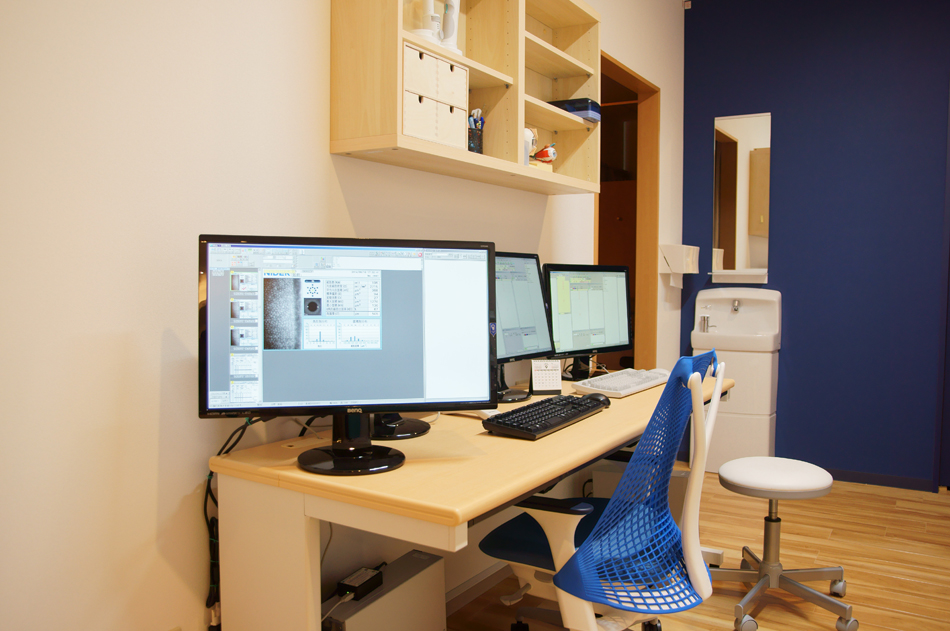 角膜内皮細胞と呼ばれる角膜の一番深い層にある細胞の数や形状を調べて、角膜の状態をより詳しく観察するための機器です。 |